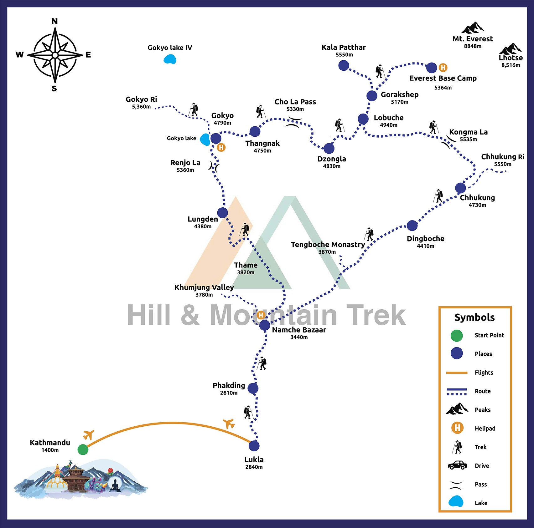 The Everest High Pass trek is famously known for exploring the beautiful Everest region as it provides trekkers with a chance to cross three high passes in the Everest Region: Kongma La Pass, Cho La Pass and Renjo La Pass. Starting from Lukla, the trek encompasses lush landscapes and local communities, encountering Sherpa people, their hospitality and way of living.