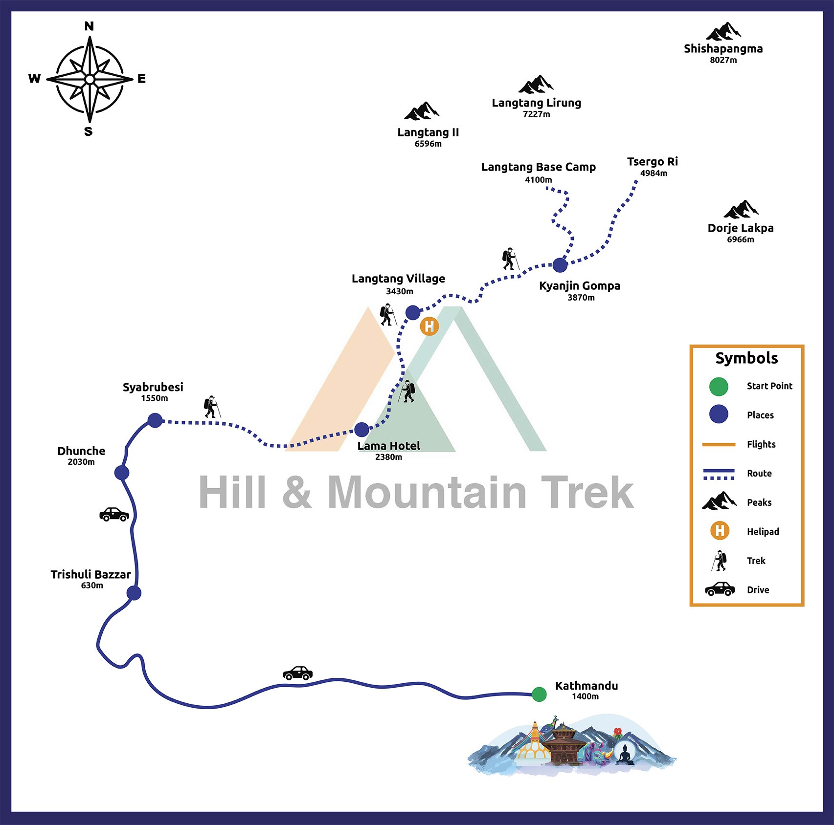 Arrive at Tribhuvan International Airport and transfer to your hotel in Kathmandu. Meet your trekking guide for a briefing about the Langtang Valley trek. Spend the evening exploring Thamel, shopping for essentials, or relaxing after your journey.