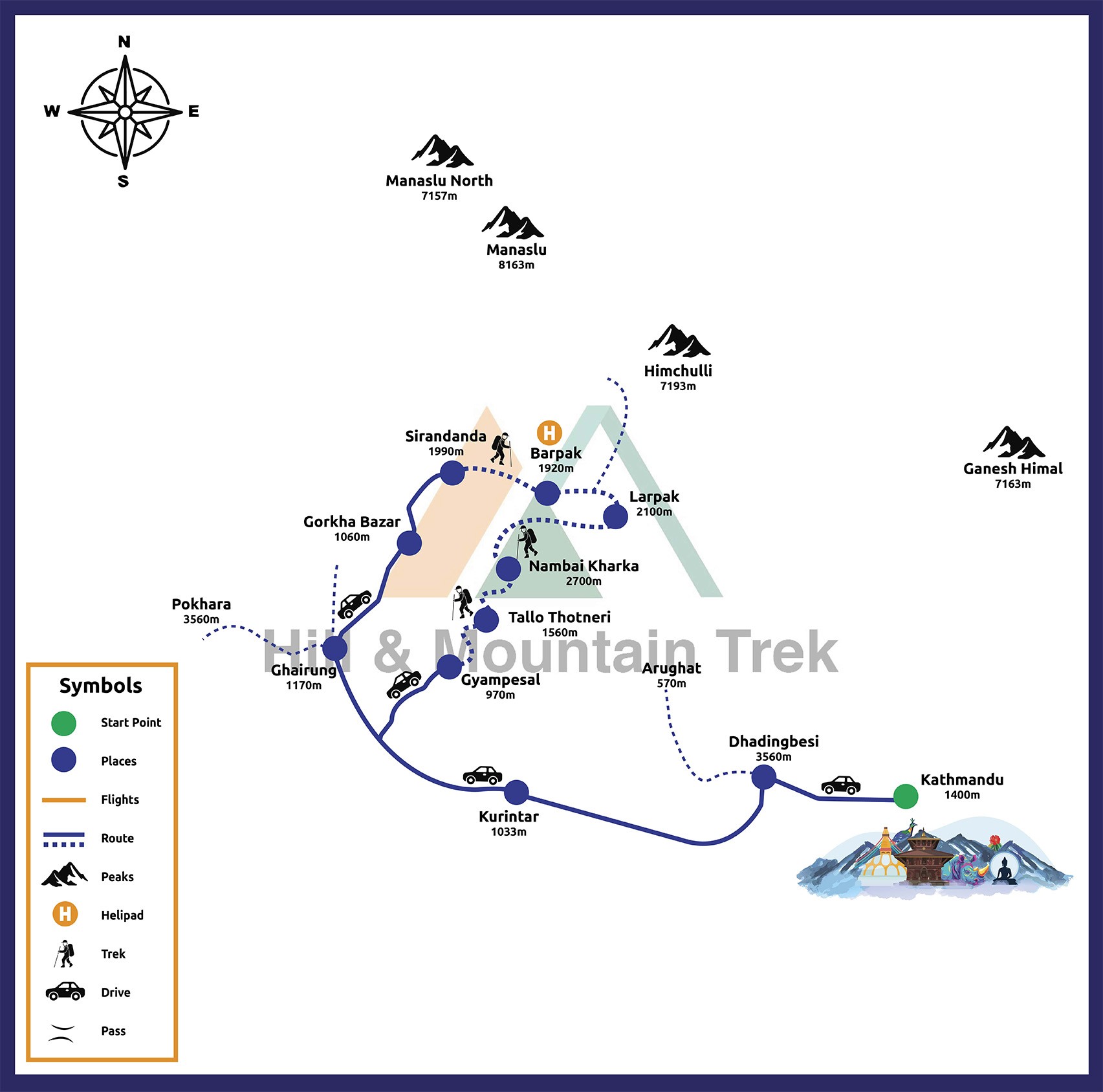 Completing our marvelous trek at Ghyampesal village, from here an early morning drive from Gyampesal to the Gorkha Bazaar. A rough ride on the dirt road for a few hours before reaching Gorkha Bazaar. From the town of Gorkha, either on a private jeep/car or taking a regular local bus to Kathmandu. The drive is pleasant on the main highway through many farm villages and towns. As the drive ends on reaching at Kathmandu by late afternoon or evening time.