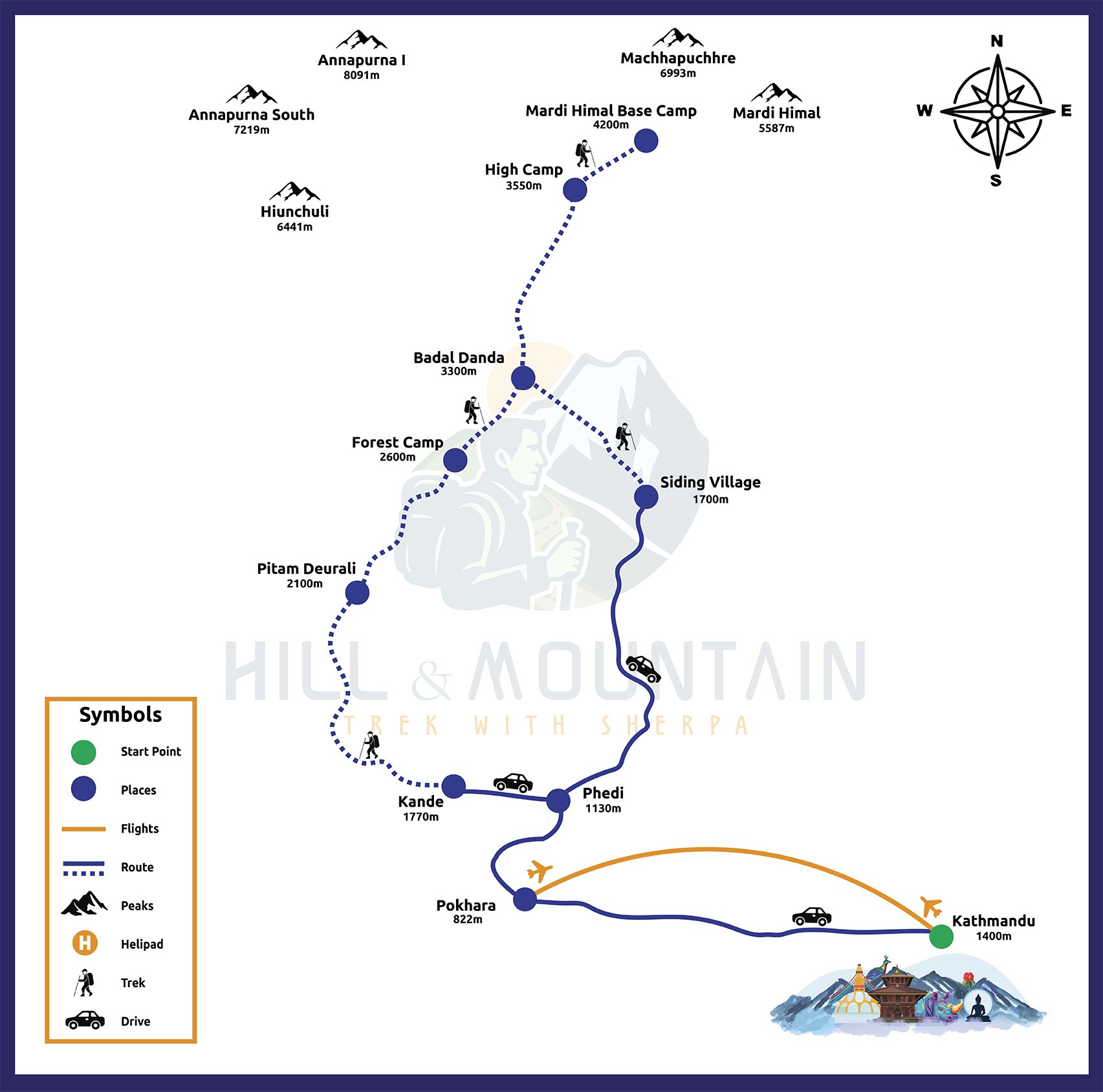 Upon arrival at Tribhuvan International Airport, our representative greets you and transfers you to your hotel in Kathmandu. After a brief rest, you meet your trek leader for an introduction and a detailed briefing about the Mardi Himal journey. You can spend the remaining time exploring Thamel’s vibrant streets, shops, and cafés. This day helps you transition into Nepal’s culture and prepare for the trek. Overnight in Kathmandu.